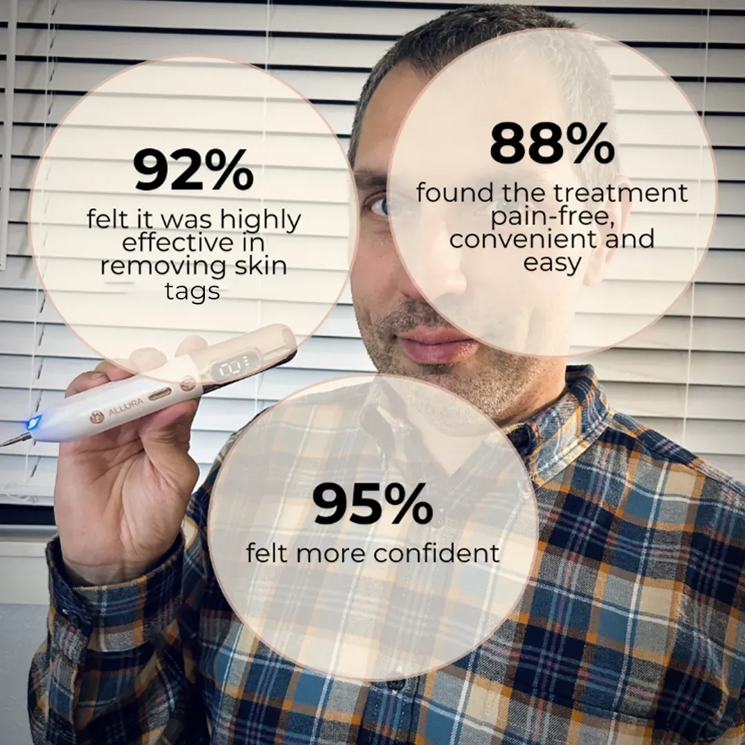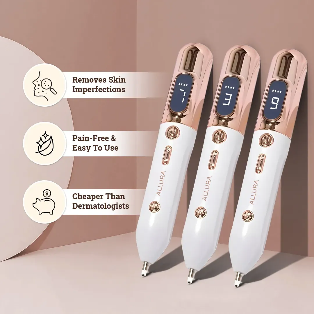 Unlike over-the-counter freezing kits or harsh acids, the Allura Pen provides controlled, targeted removal that’s gentle on the surrounding skin. It offers the convenience of an at-home solution, saving you the cost and time of clinic visits, and unlike DIY methods, it minimizes the risk of scarring and infection with its precision tip.
